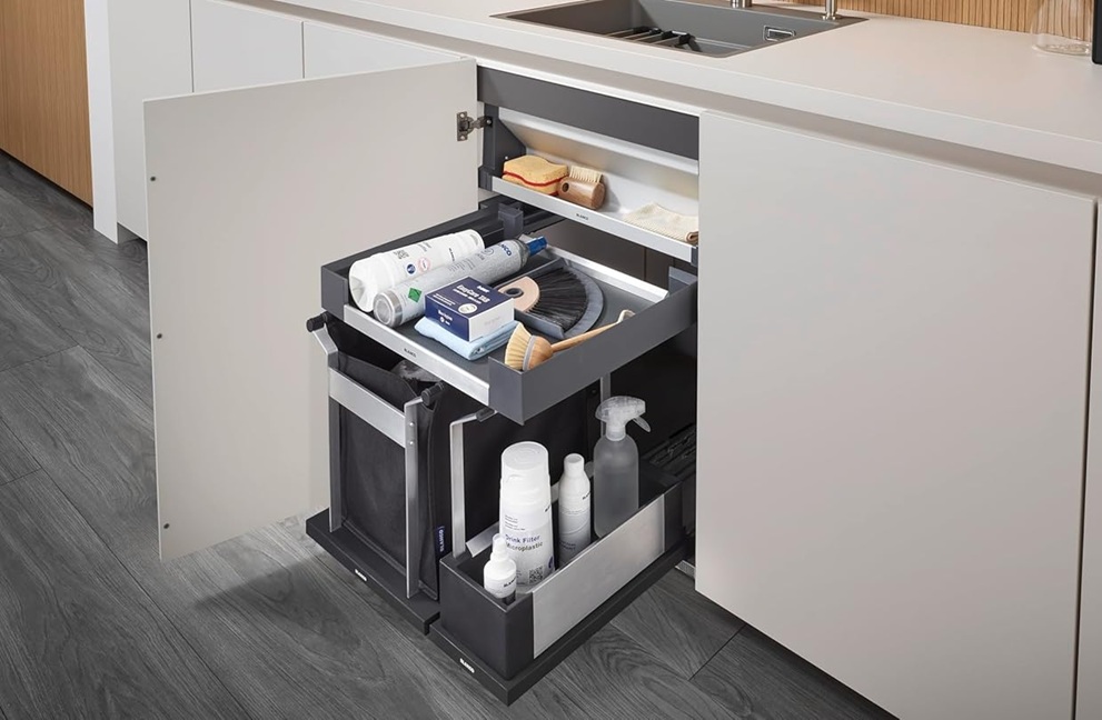 Odlična za odlaganje pribora za sudoperu, sredstava za čišćenje, rolni kesa za smeće, tableta za mašinu za pranje sudova i drugih sitnih predmeta.