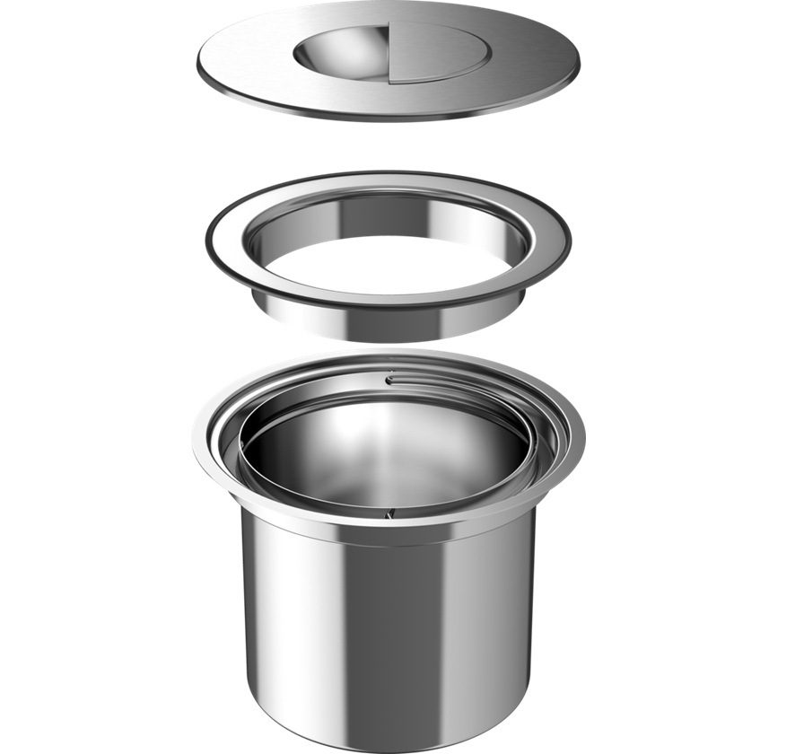 Sa BLANCO SOLON-om, dobijate sakupljač otpada za organski otpad direktno na radnoj površini. Ovo vam omogućava da bacate otpad pravo u kantu od nerđajućeg čelika pored vas dok pripremate hranu, bez potrebe da se saginjete. Visokokvalitetni obrađeni nerđajući čelik čini kantu za otpad posebno lakom za čišćenje. Jednostavno je ispraznite i stavite u mašinu za pranje sudova, i ona će ponovo zasijati za tren oka. Zahvaljujući svom ravnom obodu, posuda se harmonično uklapa sa radnom površinom i dopunjuje vaš vrhunski organizovan radni prostor.