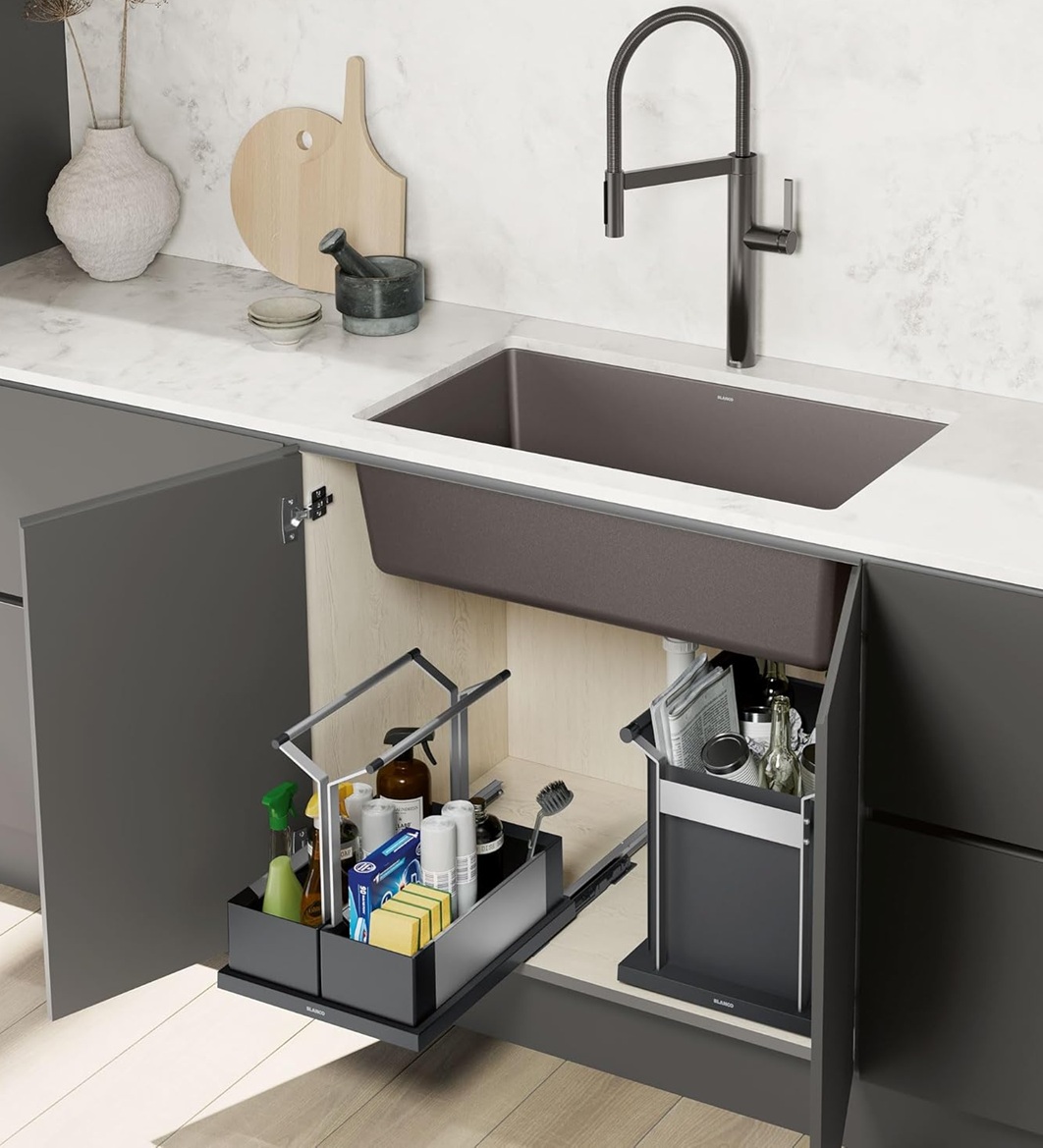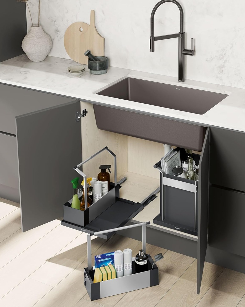 - Idealan za organizovanje predmeta kao što su sredstva za čišćenje ispod sudopere.