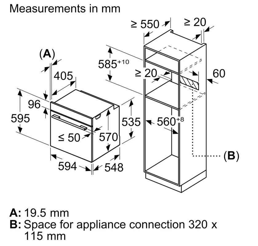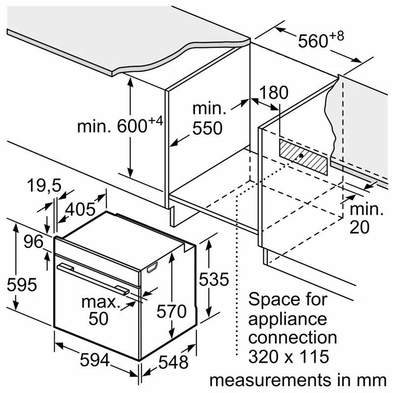 - Dimenzije niše: 585-595 x 560-568 x 550 mm