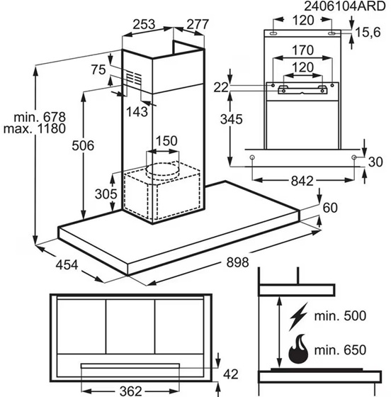 - Minimalno rastojanje od električne ploče: 50 cm