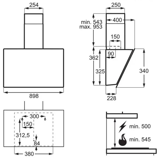 - Minimalno rastojanje od plinske ploče: 54 cm