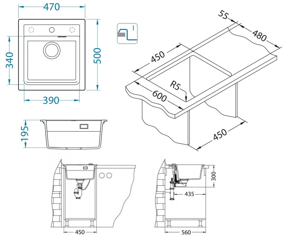 Način ugradnje Atrox sudopera: usadni (I) i podgradni (U).