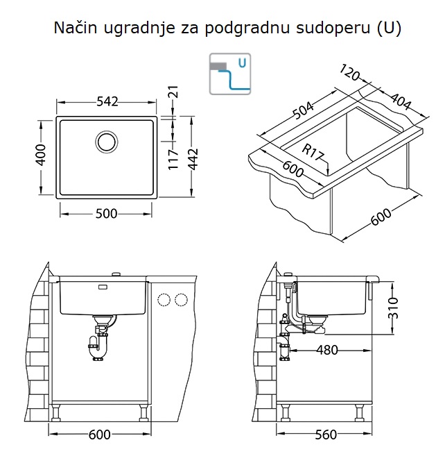 Način ugradnje: podgradna (U)