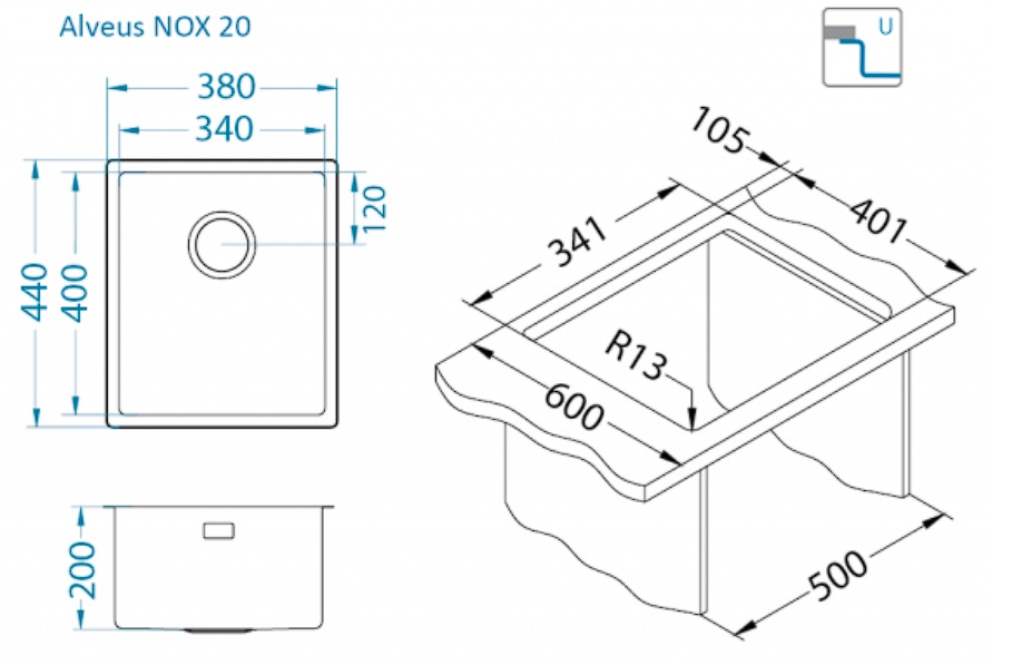 ALVEUS PODGRADNA SUDOPERA NOX 20 380×440/200 mm