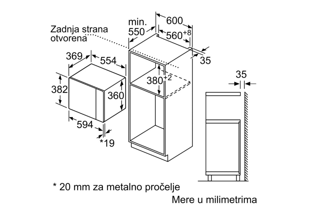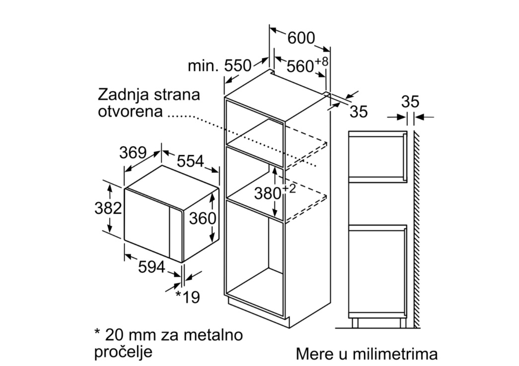 - Minimalna širina za montažu: 560 mm