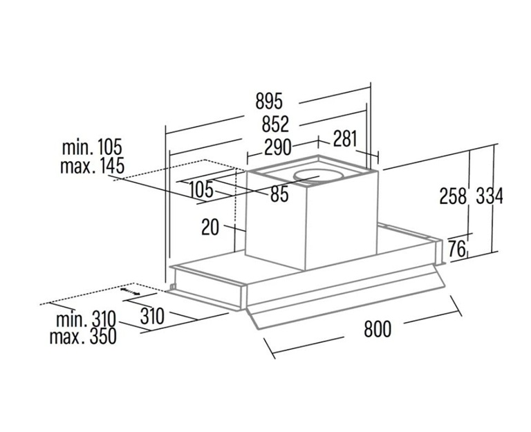 - Razdaljina od plinskog šporeta: minimum 65 cm