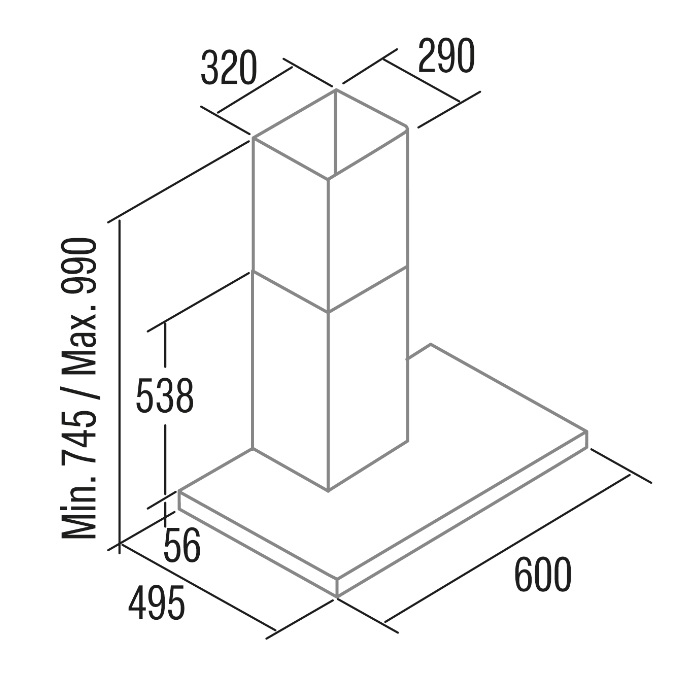- Razdaljina od plinskog šporeta: minimum 65 cm