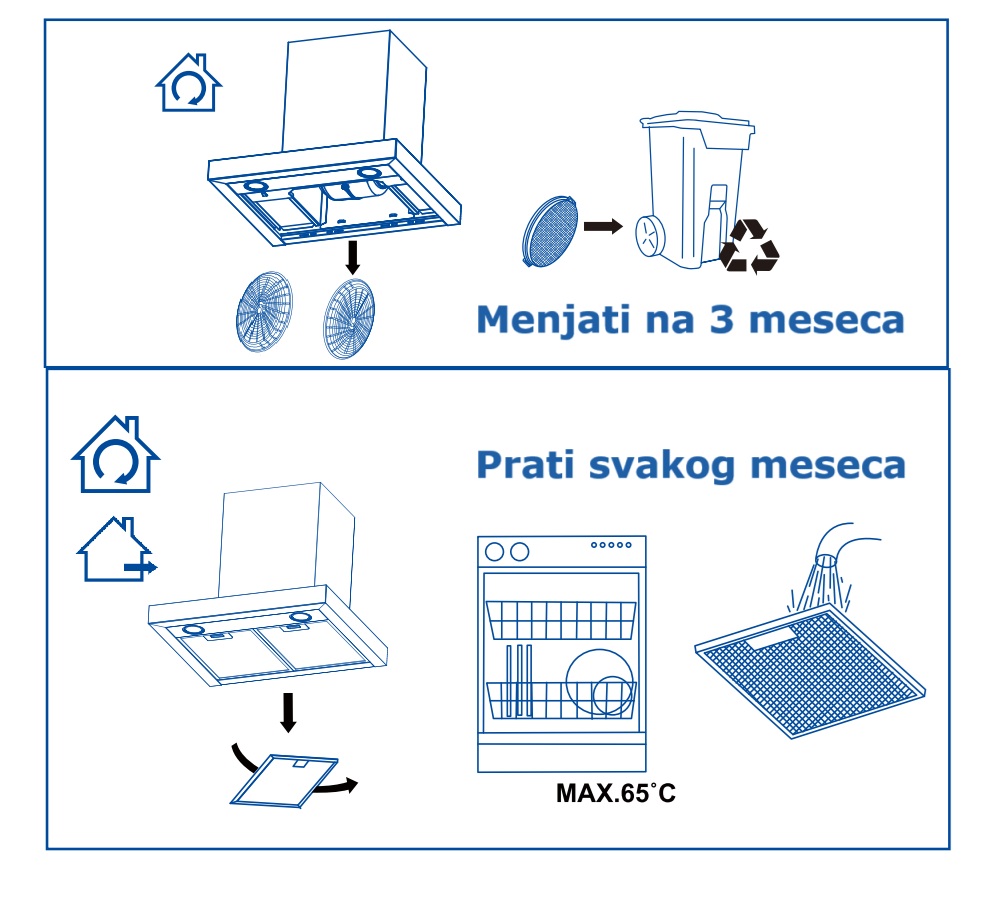 - Komande na dodir sa tajmerom za automatsko isključivanje i indikatorom zaprljanosti filtera