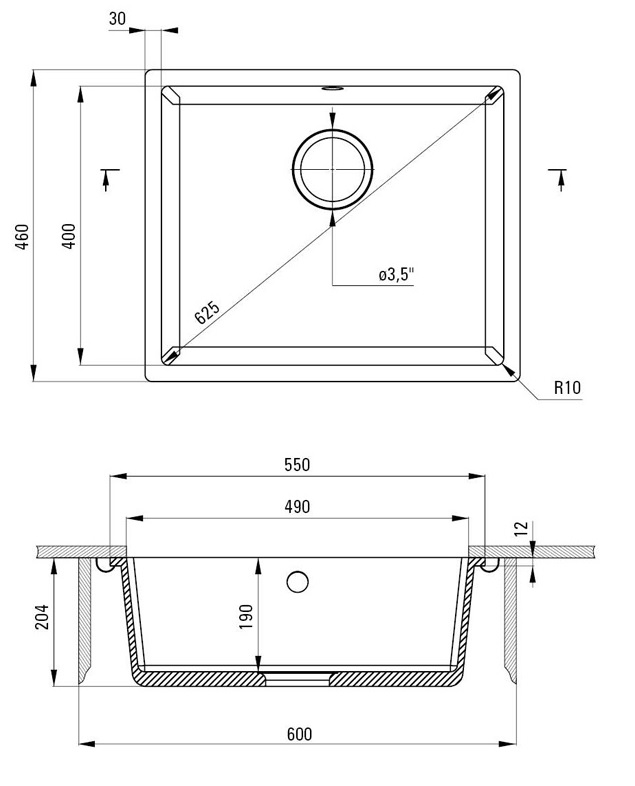 DEANTE PODGRADNA SUDOPERA CORDA ZQA G10C M.GRAFIT 550x460/204 mm