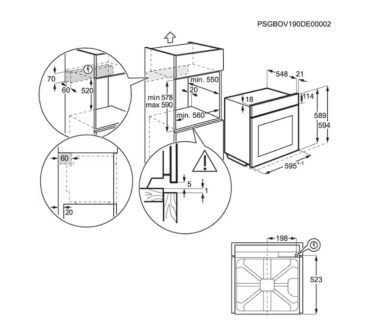 - Dimenzije (mm) VxŠxD 594x596x569