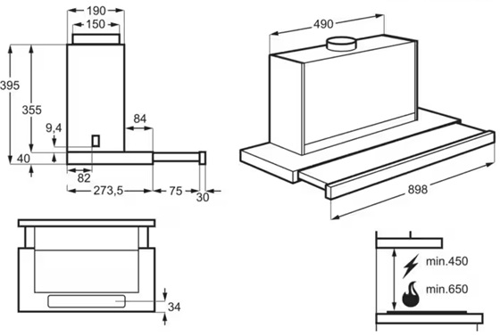 - Minimalno rastojanje od električne ploče: 45 cm