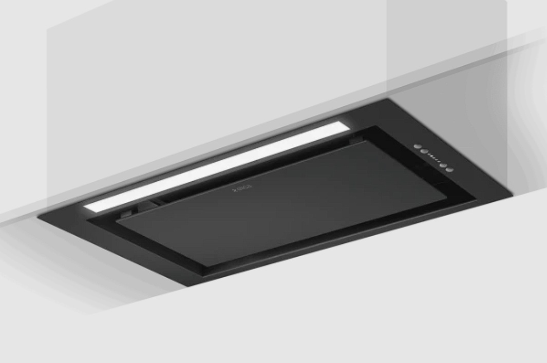 - Kružno usisavanje (Perimetarsko): Sistem usisavanja je raspoređen po ivicama aspiratora, što nudi maksimalnu efikasnost. Usisna površina je sakrivena panelom radi elegantnijeg izgleda.