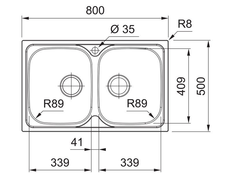 - Dimenzije sudopere: 800x500 mm
