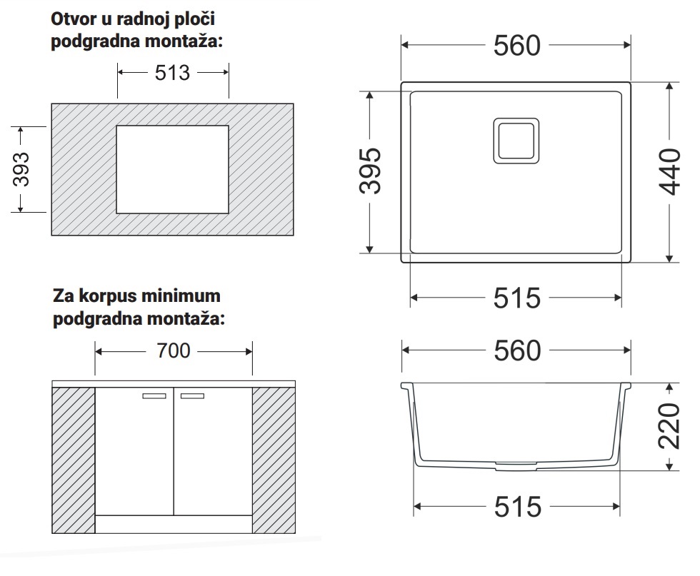GRANITNA PODGRADNA SUDOPERA GL BARI 1K BEŽ 560x440x220MM